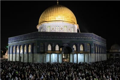 Tens of thousands of Muslim worshippers pray at the Al-Aqsa mosque compound on Qadr Night (Laylat al-Qadr) during the month of Ramadan in Jerusalem's Old City, April 27, 2022. Photo by Jamal Awad/Flash90.png